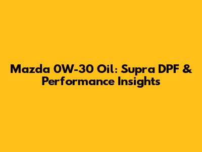 Mazda 0W-30 Oil: Supra DPF & Performance Insights