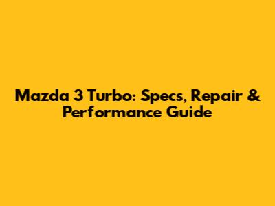 Mazda 3 Turbo: Specs, Repair & Performance Guide