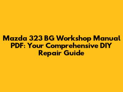 Mazda 323 BG Workshop Manual: Your DIY Repair Guide