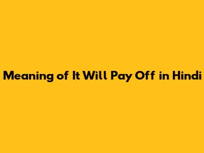 Meaning Of 'It Will Pay Off' In Hindi