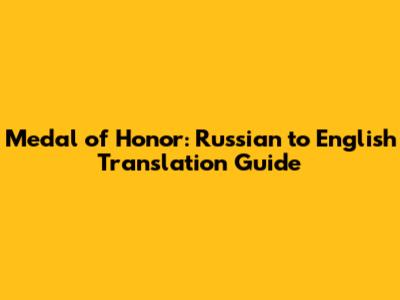 Medal Of Honor: Russian To English Translation Guide