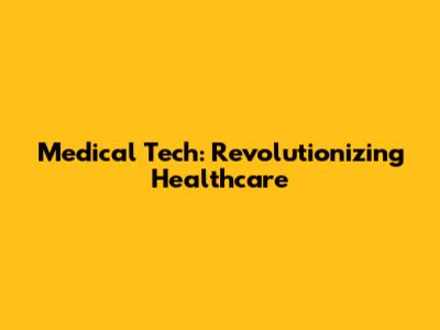 Medical Tech: Revolutionizing Healthcare