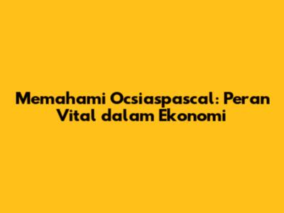 Memahami Ocsiaspascal: Peran Vital Dalam Ekonomi