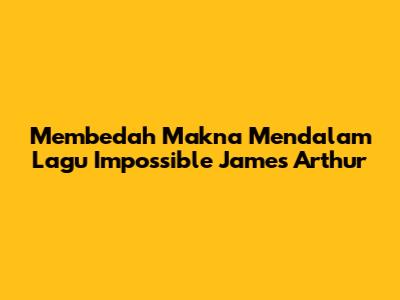 Lagu "Impossible" yang dinyanyikan oleh James Arthur telah berhasil menyentuh hati jutaan pendengar di seluruh dunia. Lagu ini bukan hanya sekadar alunan melodi yang indah, tetapi juga mengandung makna yang mendalam tentang kesedihan, kehilangan, dan perjuangan dalam menghadapi berbagai rintangan hidup. Sebagai seorang musisi berbakat, James Arthur berhasil merangkai kata-kata yang mampu menggambarkan perasaan terdalam manusia, membuat lagu ini begitu relatable bagi siapa saja yang pernah merasakan kepedihan. Dalam artikel ini, kita akan membahas secara mendalam mengenai makna di balik lirik lagu "Impossible", serta bagaimana lagu ini bisa menjadi cerminan dari pengalaman hidup kita.