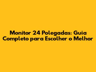 Por Que um Monitor 24 Polegadas? Vantagens e Benefícios