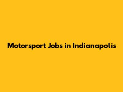 Motorsport Jobs In Indianapolis