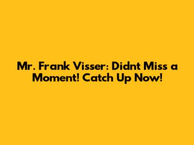 Mr. Frank Visser: Didn't Miss A Moment! Catch Up Now!