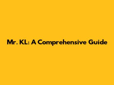 Mr. KL: A Comprehensive Guide