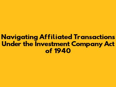 Hey everyone! Ever heard of the Investment Company Act of 1940? It's a big deal for folks involved in investment companies, and a key part of it deals with affiliated transactions. Let's break down what that means, why it matters, and how to navigate these tricky waters. Understanding the IAFFILIATED TRANSACTIONS 1940 ACT is crucial for anyone in the investment game. It's like knowing the rules of the road – you gotta know them to stay safe and avoid getting into trouble! We'll explore the ins and outs, so you can sound like a pro and feel confident when dealing with these complex issues. So, grab your coffee, and let’s dive in!