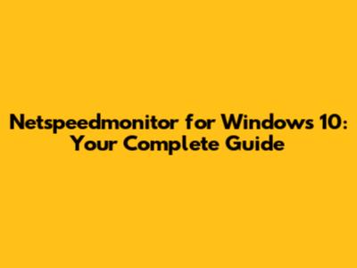 Netspeedmonitor For Windows 10: Your Complete Guide
