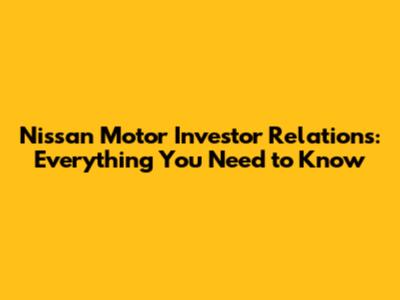Nissan Motor Investor Relations: Everything You Need To Know