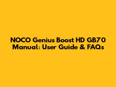 NOCO Genius Boost HD GB70 Manual: User Guide & FAQs