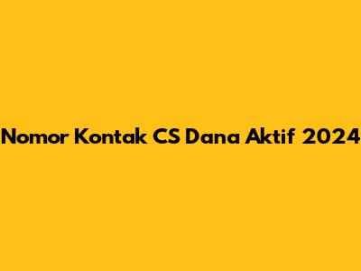 Nomor Kontak CS Dana Aktif 2024