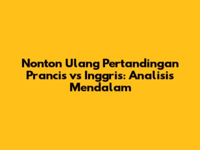 Guys, ada beberapa alasan kuat kenapa kamu harus banget nonton ulang pertandingan Prancis vs Inggris ini: Pertama, karena pertandingan ini dijamin seru dan menegangkan dari awal sampai akhir. Kedua, karena kamu bisa melihat aksi-aksi kelas dunia dari pemain-pemain terbaik dunia. Ketiga, karena kamu bisa belajar lebih banyak tentang strategi dan taktik sepak bola. Keempat, karena kamu bisa menghidupkan kembali euforia dan emosi yang mungkin kamu rasakan saat nonton langsung. Kelima, karena kamu bisa berdiskusi dengan teman-teman sesama penggemar sepak bola. Jadi, tunggu apa lagi? Segera cari siaran ulangnya dan nikmati pertandingan seru ini!