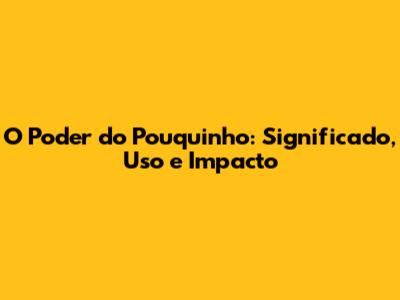 O Poder Do Pouquinho: Significado, Uso E Impacto