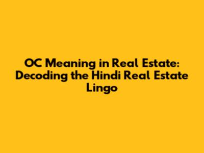 OC Meaning In Real Estate: Decoding The Hindi Real Estate Lingo