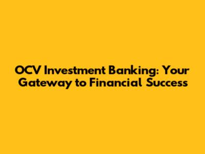 OCV Investment Banking: Your Gateway To Financial Success