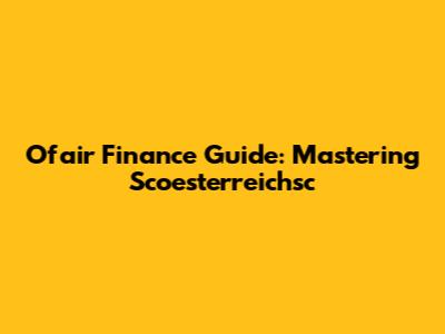 Ofair Finance Guide: Mastering Scoesterreichsc