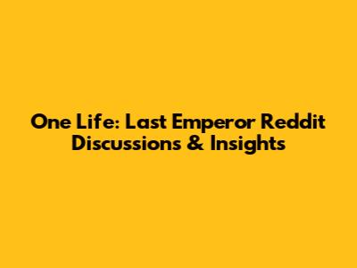 One Life: Last Emperor Reddit Discussions & Insights