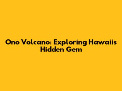 Ono Volcano: Exploring Hawaii's Hidden Gem