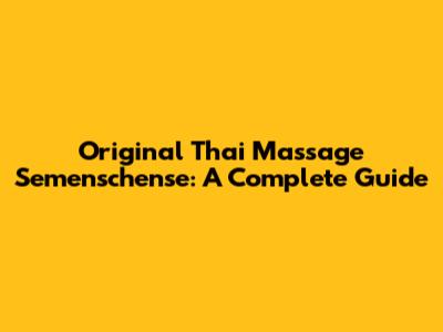 Original Thai Massage Semenschense: A Complete Guide