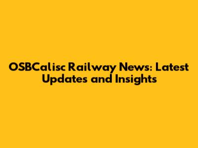 OSBCalisc Railway News: Updates And Insights