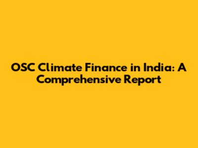 OSC Climate Finance In India: A Comprehensive Report