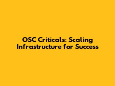 OSC Criticals: Scaling Infrastructure For Success