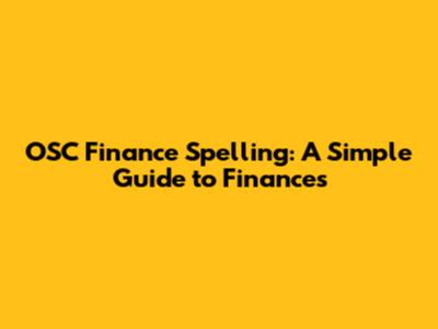 OSC Finance Spelling: A Simple Guide To Finances