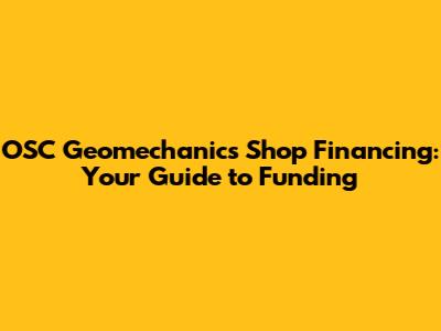 OSC Geomechanics Shop Financing: Your Guide To Funding