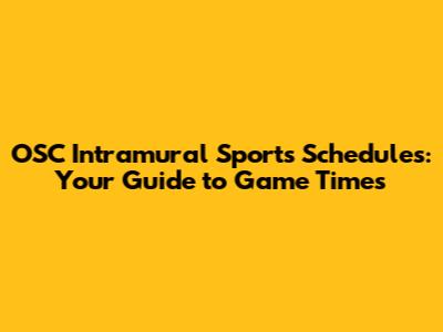 So, what exactly are we talking about when we mention OSC intramural sports schedules? Well, it’s all about knowing when and where your games are happening. The schedules include game times, locations, and which teams are playing. Getting a grip on this information early can save you a lot of headaches and ensure you don't miss out on any of the action.