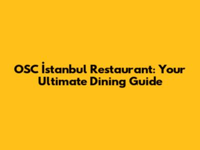 OSC İstanbul Restaurant: Contact & Dining Guide