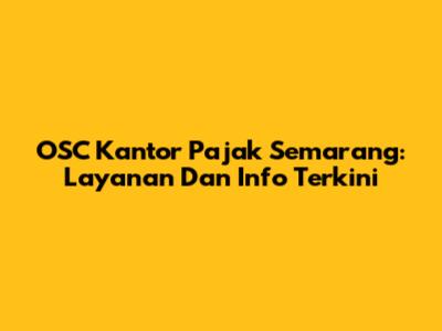 Apa Itu OSC Kantor Pajak Semarang?