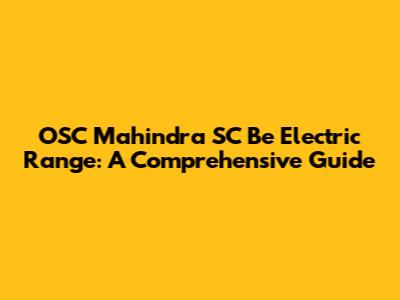 OSC Mahindra SC Be Electric Range: What You Need To Know