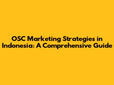 OSC Marketing Strategies: Thriving In Indonesia