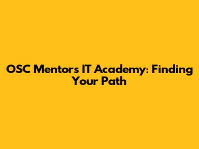 OSC Mentors IT Academy: Finding Your Path