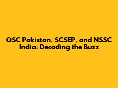 OSC Pakistan, SCSEP, And NSSC India: What You Need To Know