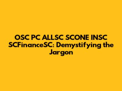 OSC PC ALLSC SCONE INSC SCFinanceSC: Your Complete Guide