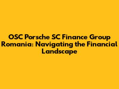 Decoding OSC Porsche SC Finance Group Romania: What They Do