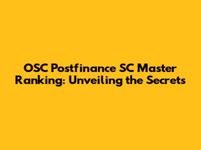 OSC Postfinance SC Master Ranking: Everything You Need To Know