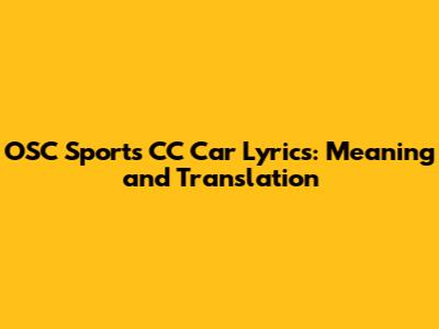 OSC Sports CC Car Lyrics: Meaning And Translation