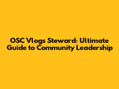 OSC Vlogs Steward: Ultimate Guide To Community Leadership