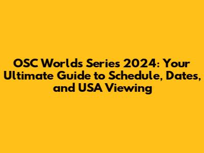 OSC Worlds Series 2024: Schedule, Dates, And Where To Watch In The USA