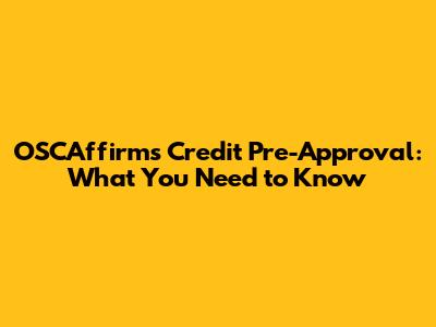 OSCAffirms Credit Pre-Approval: What You Need To Know