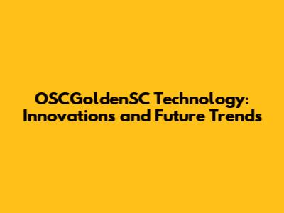 OSCGoldenSC Tech: Innovations And Future Trends