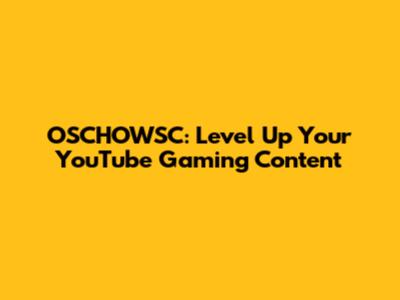 OSCHOWSC: Level Up Your YouTube Gaming Content