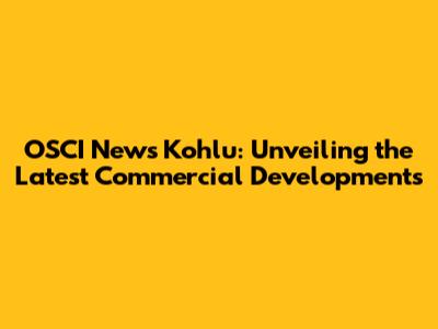OSCI News Kohlu: Unveiling The Latest Commercial Developments