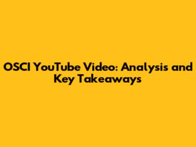 OSCI YouTube Video: Analysis And Key Takeaways