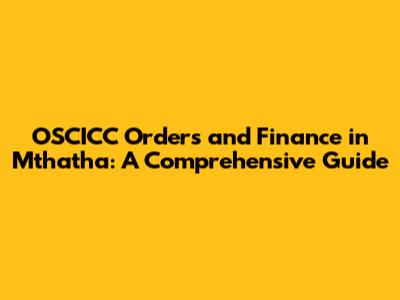 OSCICC Orders And Finance In Mthatha: A Comprehensive Guide