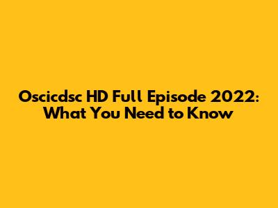Oscicdsc HD Full Episode 2022: What You Need To Know